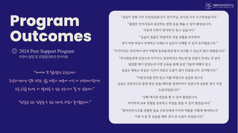 보건의료인 대상 동료지지자, 환자안전사고 소통하기 교육훈련 프로그램 운영 안내