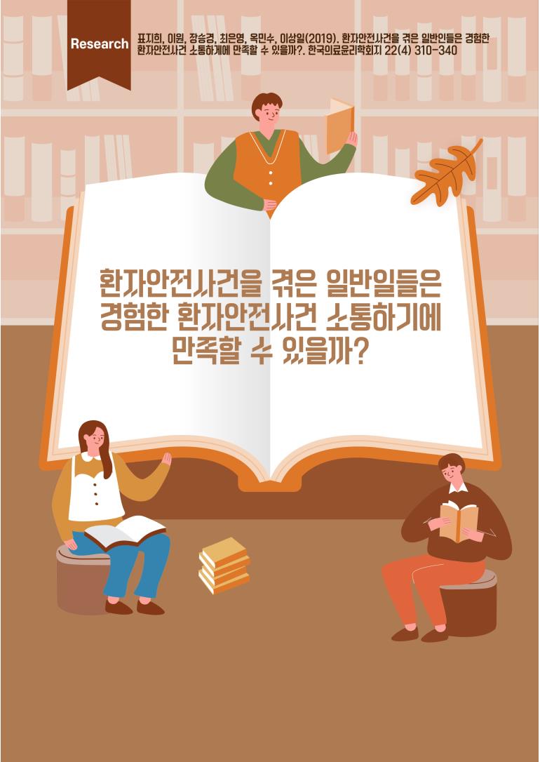 표지희, 이원, 장승경, 최은영, 옥민수, & 이상일. (2019). 환자안전사건을 겪은 일반인들은 경험한 환자안전사건 소통하기에 만족할 수 있을까?. 한국의료윤리학회지, 22(4), 321-340. | ||